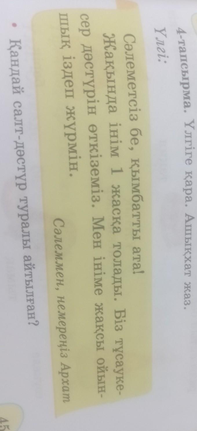 2)Бұл ашықхатта тұсаукесер дәстүрі туралы айтылған.