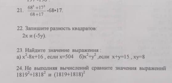 ответ22:(2х)²-(5у)²=(2х-5у)(2х+5у)
