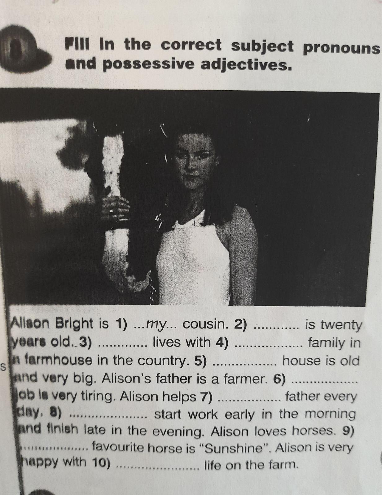 ответ: 1)my; 2)she; 3)she; 4)her; 5)her; 6)his; 7)her; 8)they; 9)her; 10)her.