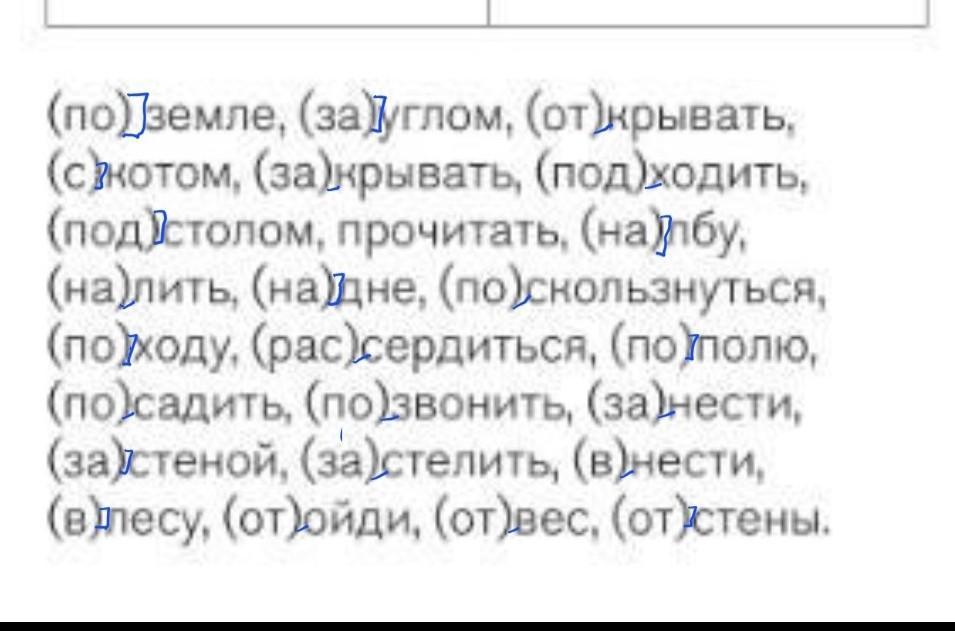 Заполните таблицу приставки и предлоги Запишите слова с приставками и с предлогами в правильные колонки.
