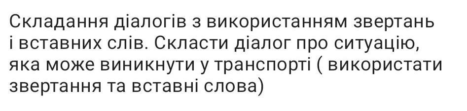 Складання діалогів з використанням звертань і вставних слів. Скласти діалог про ситуацію, яка може виникнути у транспорті (використати звертання та вставні слова)(даю 100 Балов )