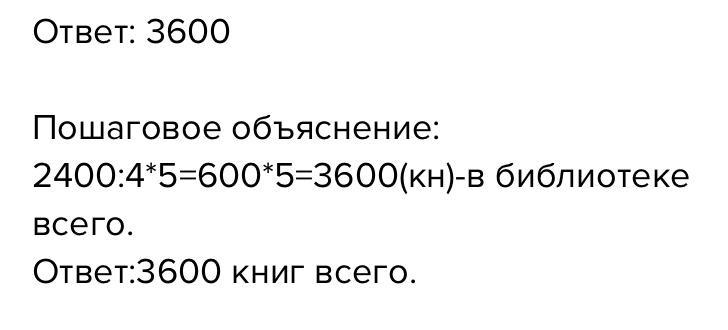 В школьной библиотеке 2400 учебников ,что составляет ⅘ всех книг . Сколько всего книг в библиотеке