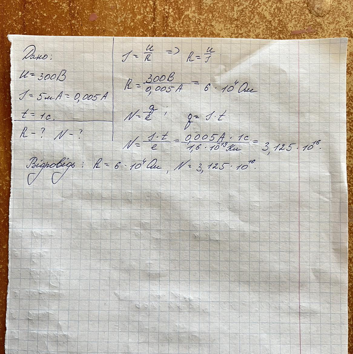 СРОЧНО!!! Який опір має вольтметр, розрахований на 300 В, якщо при цій напрузі через нього проходить струм 5 мА? Визначити скільки електронів проходить через нього за 1 с.