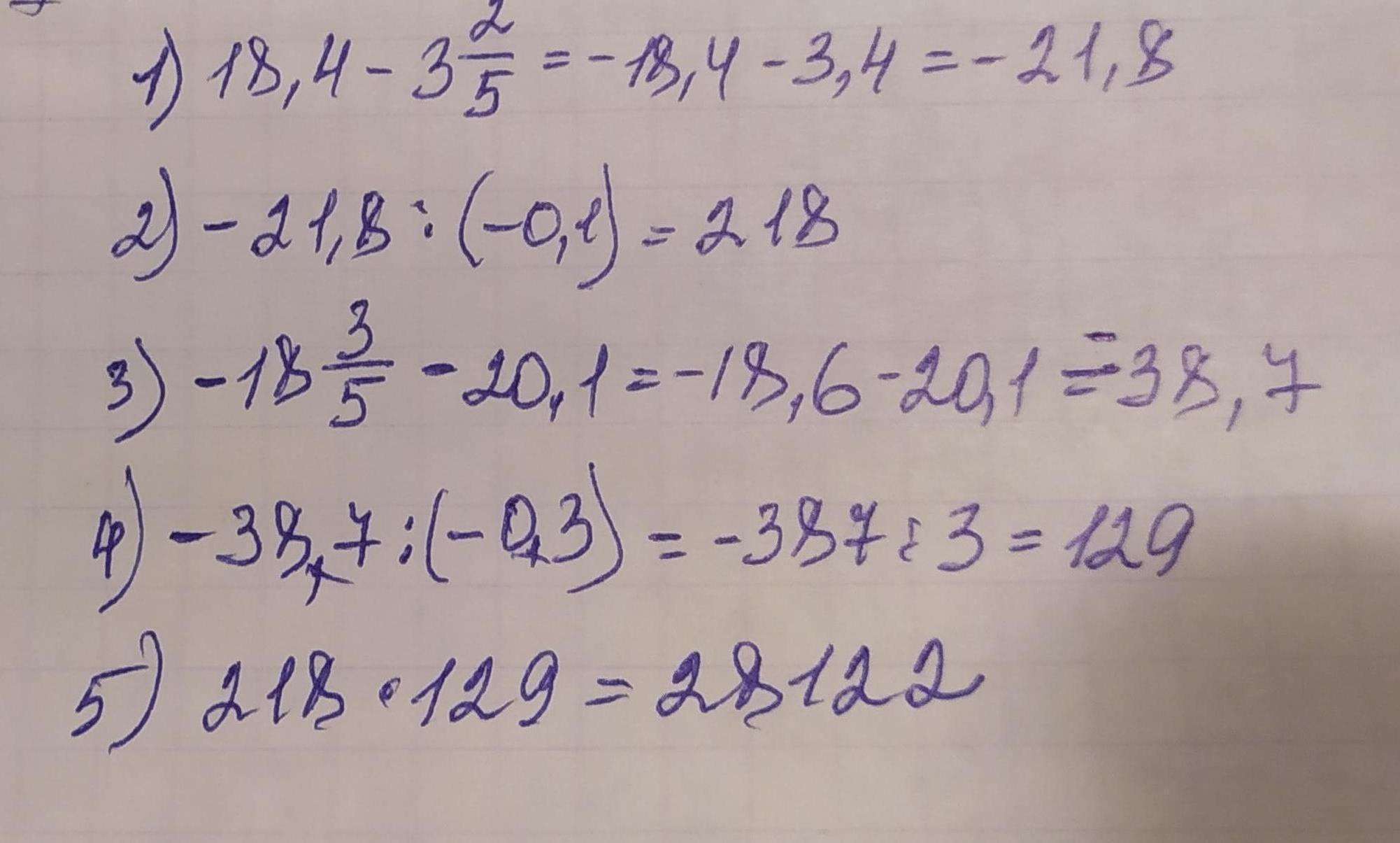 1) -18,4 - 3 2/5 = -18,4 - 3,4 = -21,8