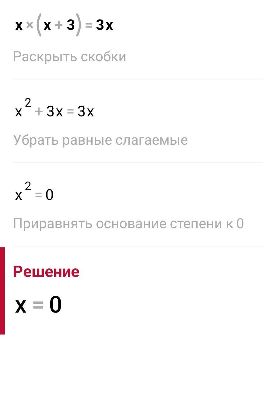 Помогите с уравнением x(x+3) = 3x. Известен ответ: x = 0. Мне хотелось бы знать, как понять, что это единственный вариант.