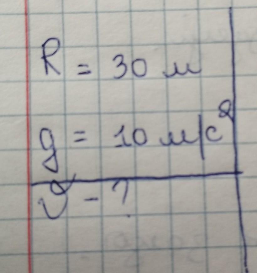 V=√(aR)=√(10*30)=√300≈17.3 м/с