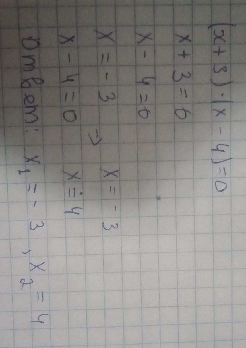 (Х+3)(х-4)=0 Корні записати через точку з комою, починаючи з меншого без пробелів