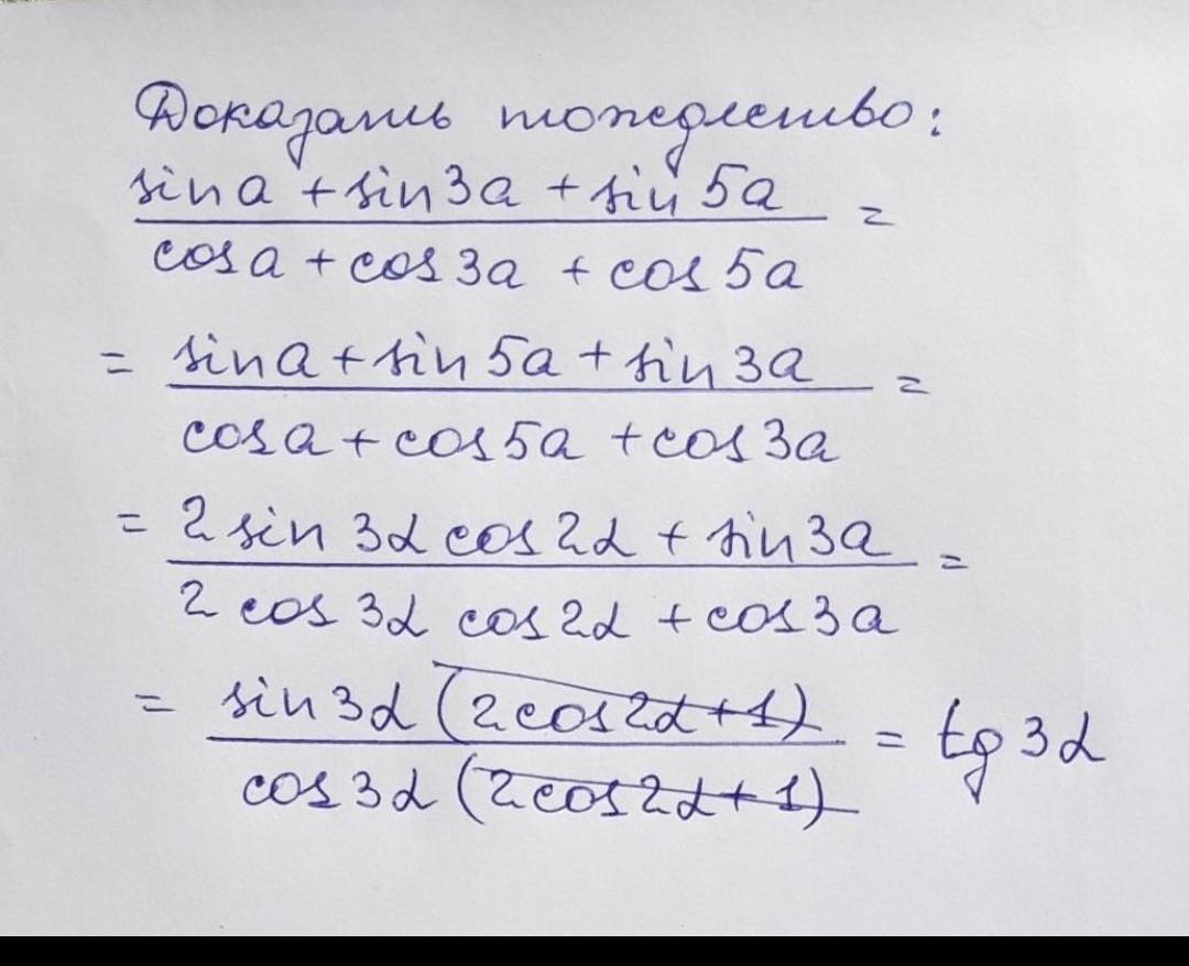 sin a + sin 3a + sin 5α cos a +cos3a + cos5a = tg 3a