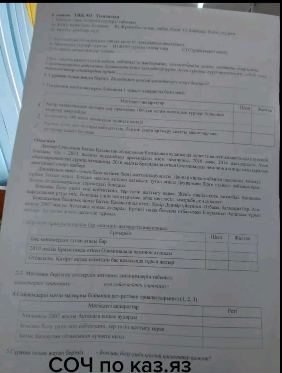 помогите пожалуйста соч по казаскому 6 класс 3 четверть