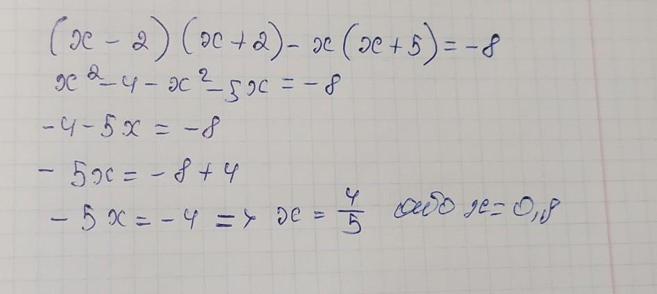 (х-2)(х+2)-х(х+5)=-8=-5x-4=-8=4/5=0.8