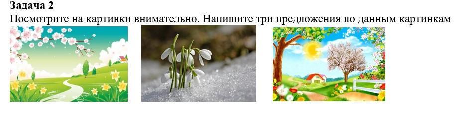 1) Көктем келді, бәрі жасыл түске боялады, гүлдер өсіп жатыр, қар бірте-бірте жерден шығады.