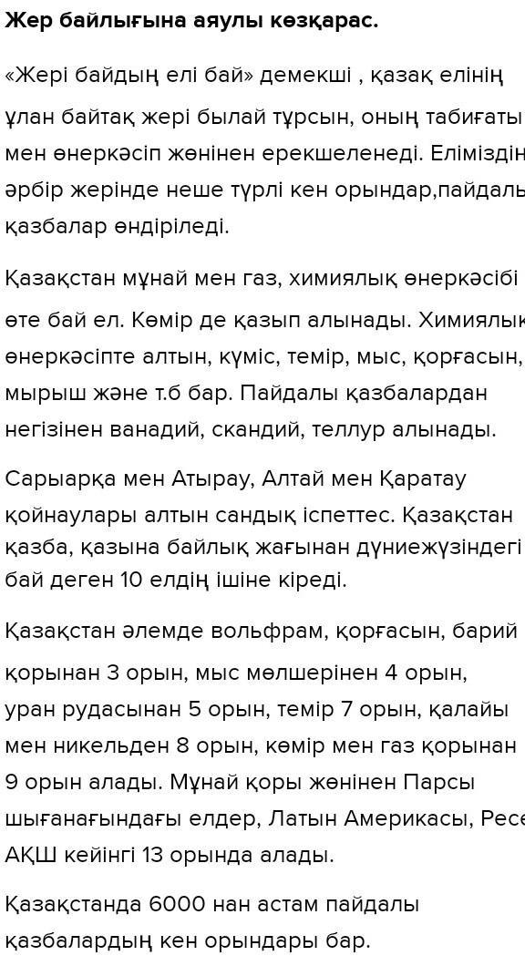 НАПИШИТЕ СОЧИНЕНИЕ НА ТЕМУ:Жер байлығына аяулы көзқарас