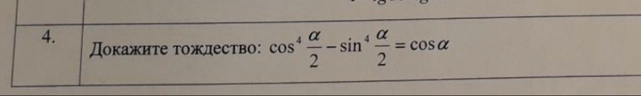 Докажите тождество: cos^4 a/2-sin^4 a/2=cos a