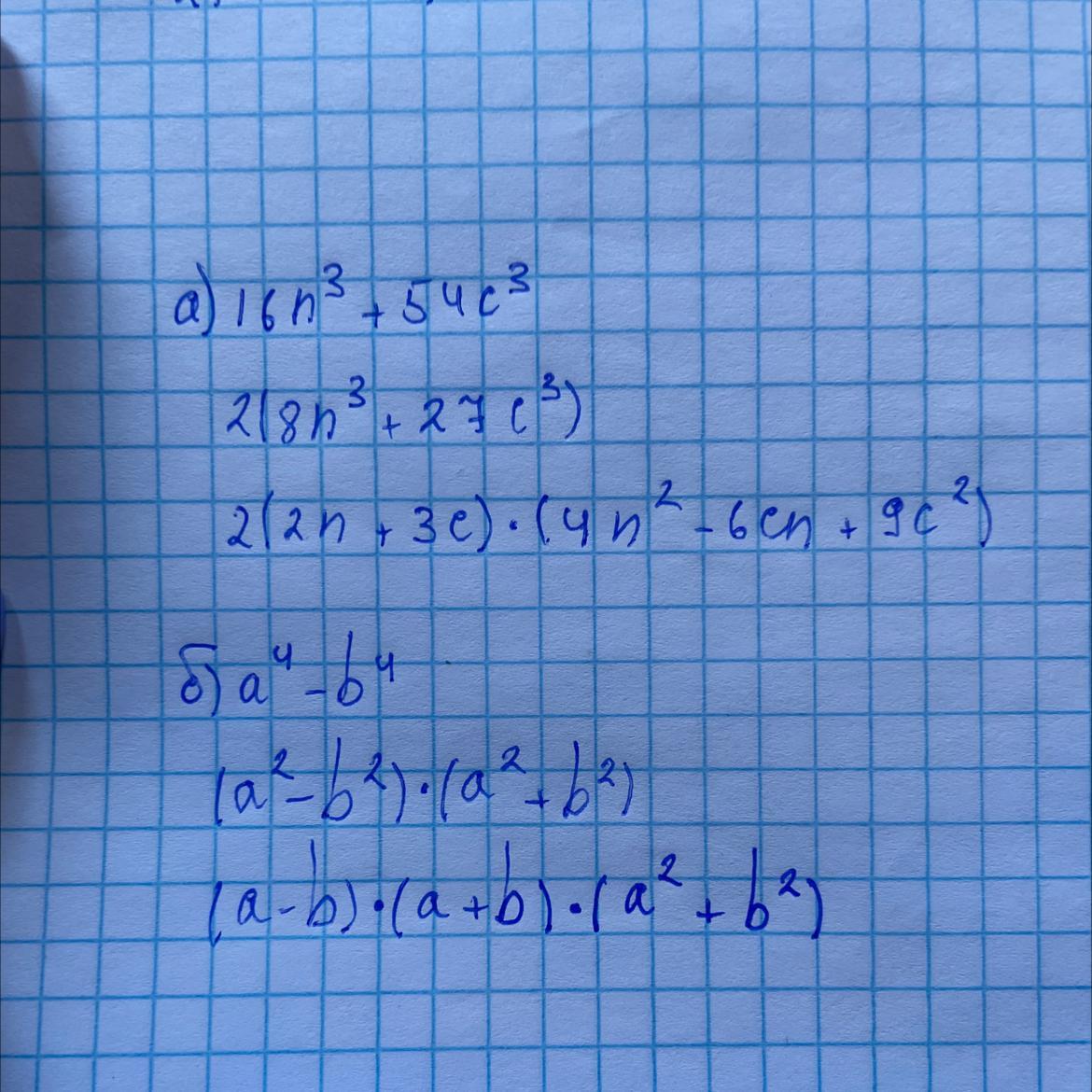 многочлен на множители: а) 16n3 + 54c3; b) 36а² - 49; c) a²-b². 5