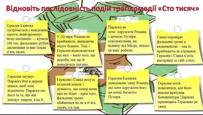 Завдання: Відновіть послідовність дій трагікомедії «Сто тисяч».