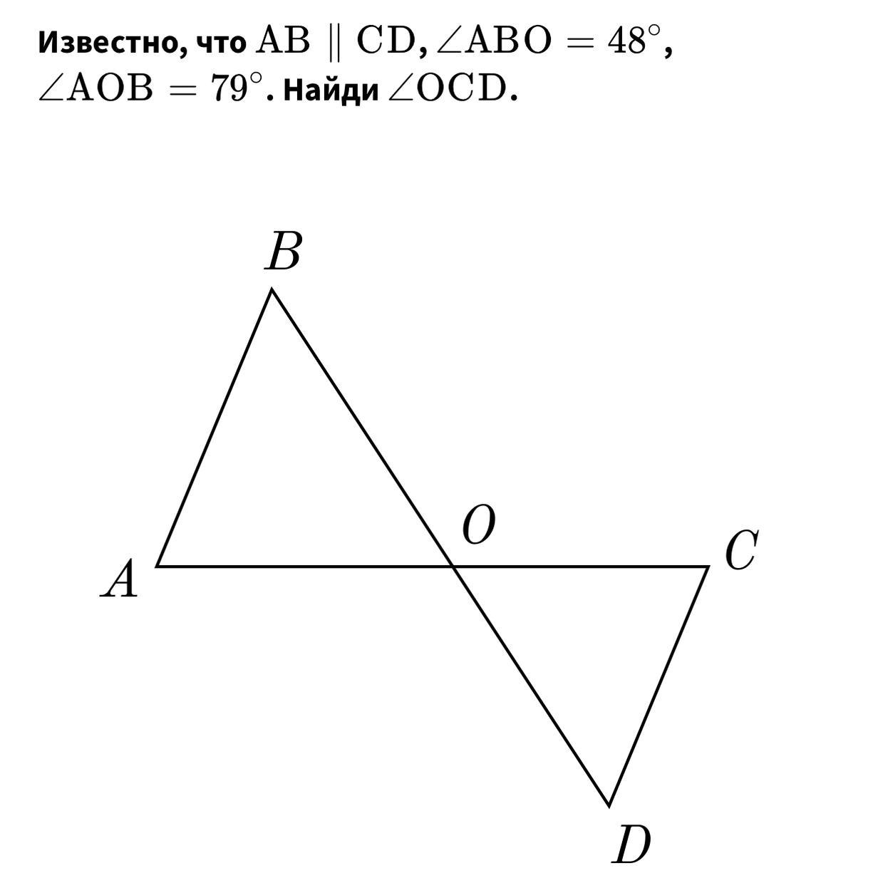∠OСD=180°-∠СОD-∠D=180°-79°-48°=53°