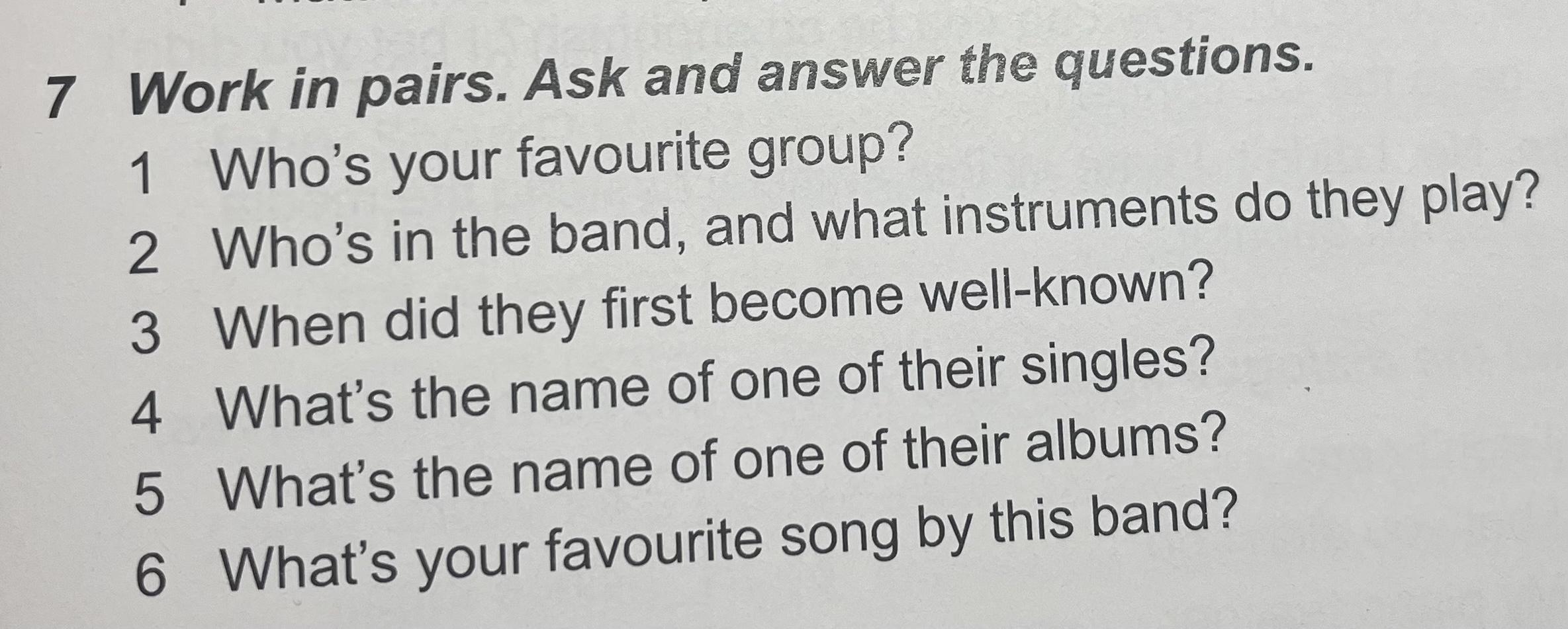 My favorite band is Metallica. It stars James Hatfield, Kirk Hammett, Lars Ulrich, Cliff Burton and others. They play guitars and drums. The band became popular around 1981. One of the singles is called "Nothing else matters". One of the albums is called "Master of Puppets". My favorite song is "The unforgiven".