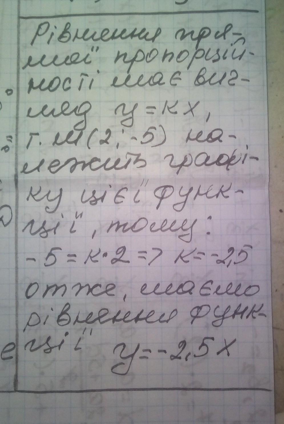 Задайте формулою функцію, яка є прямою пропорційністю, якщо її графік проходить через точку М (2; -5).