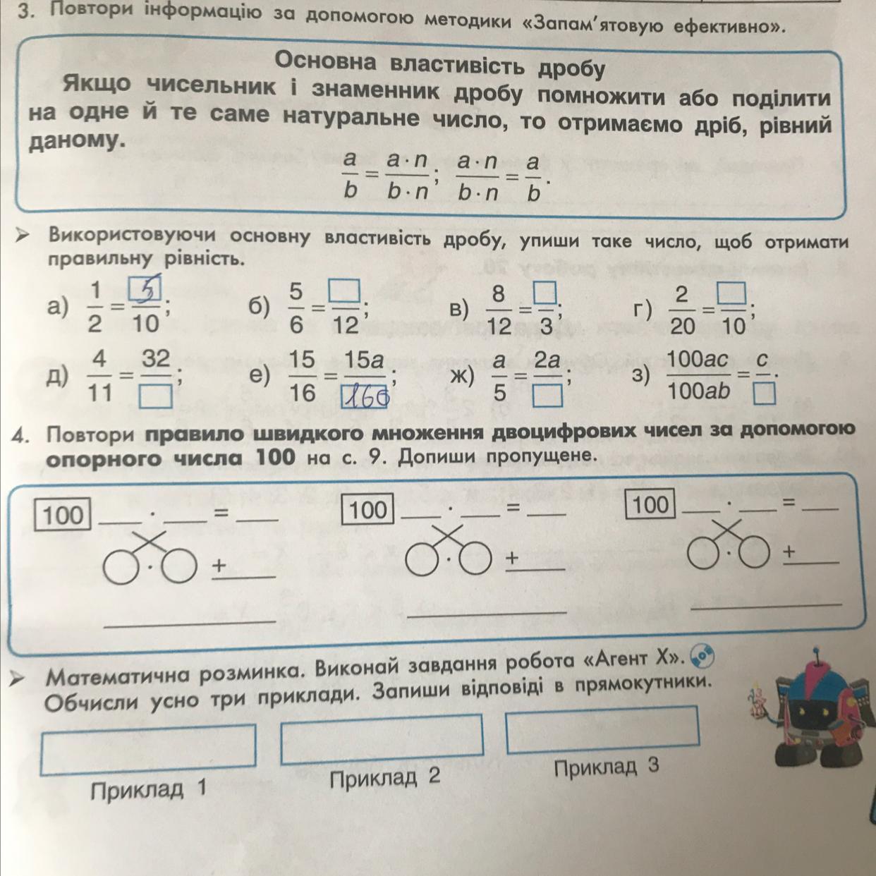 Виконай основу властивість дробу криги таке число щоб отримати правильну рівністьу