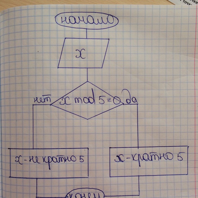 1. Составить алгоритм (блок-схему) определения кратности числа числу 5