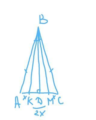 AK=x ; KM=2x ; MС=x - по условию, тогда