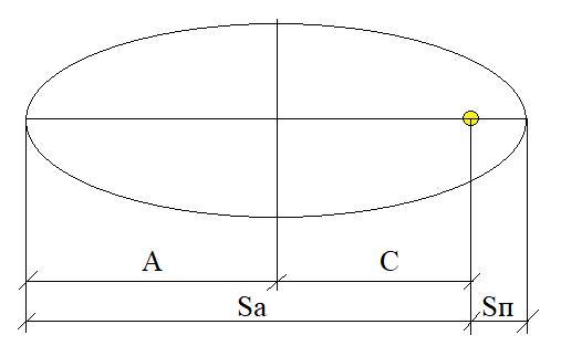 Sп - расстояние до Солнца в перигее, из рисунка Sп = А - С