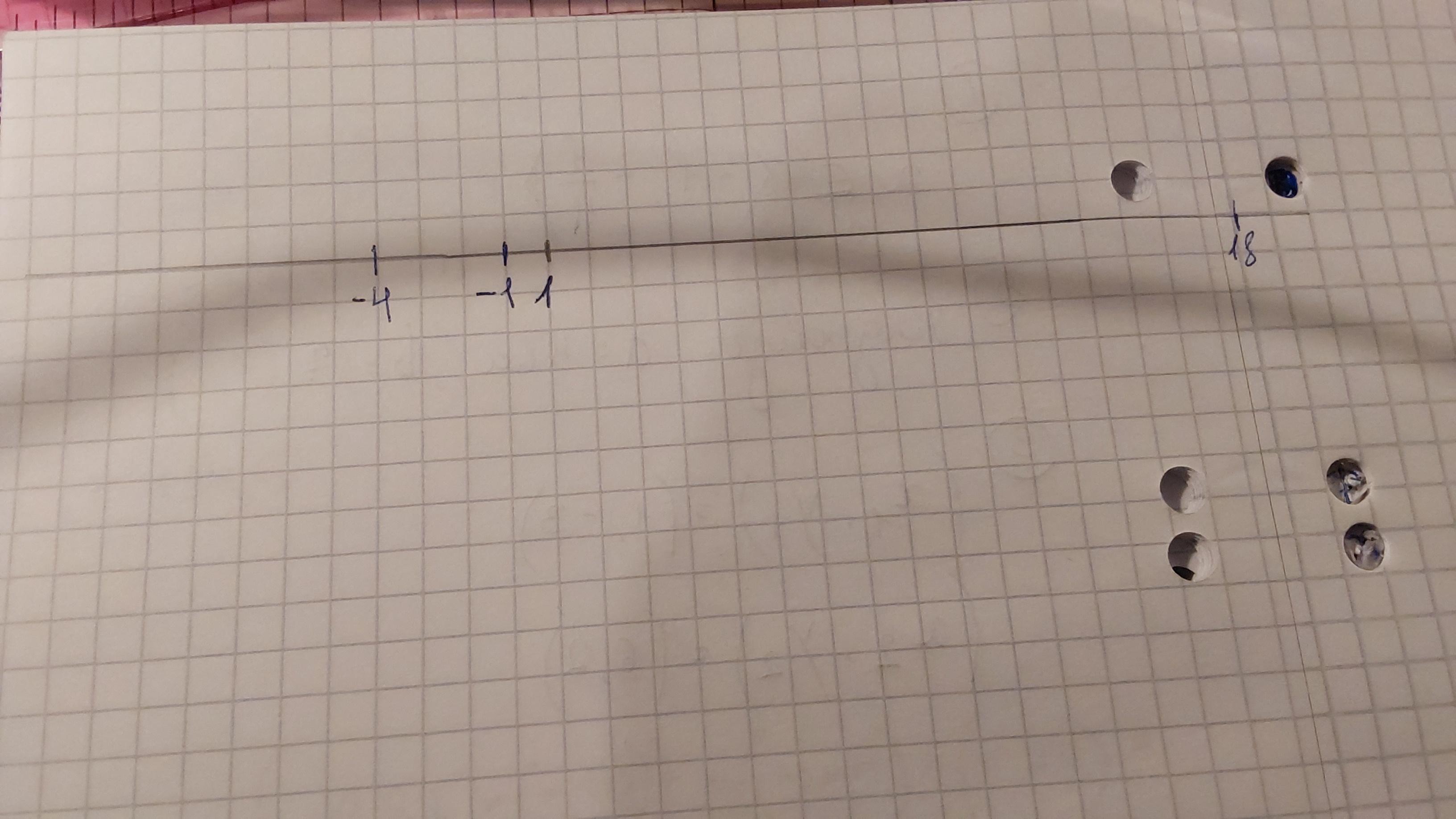 Накресліть координатную пряму, Взявши за одиничний відрізок клітинку. ПозначтеM 18), M-1), K (-4).