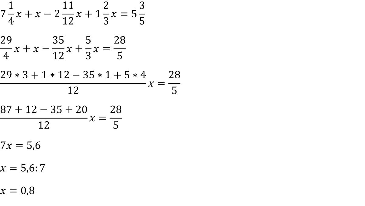 7 1/4х+х-2 11/12х+1 2/3х= 5 3/5
