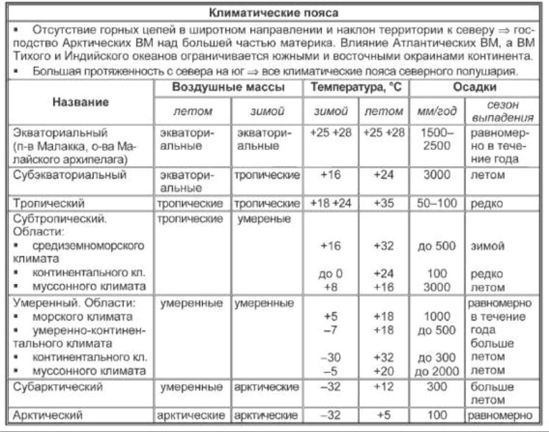 Заповнити таблицю "Кліматичні пояси Євразії"
