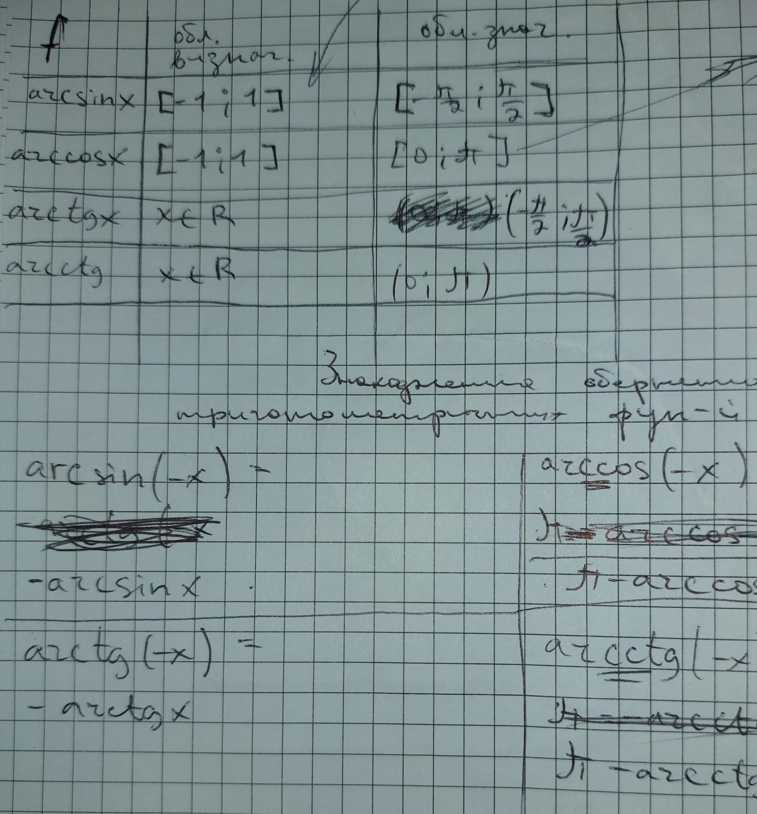 10. обернені тригонометричні функції відємного аргументу.