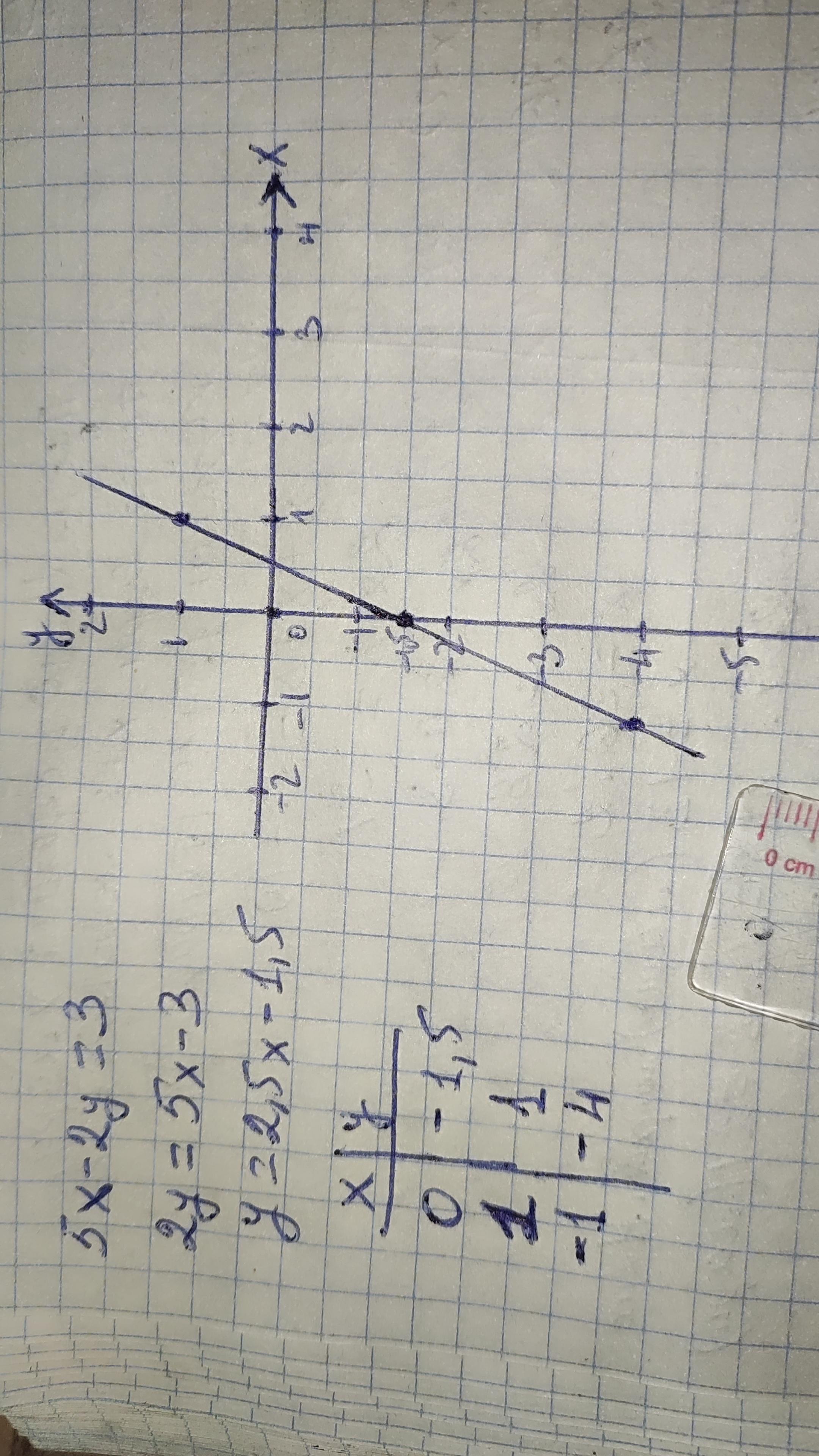 Виразіть з рівняння 5х-2у=3 змінну у через змінну х та побудуйте графік рівняння.