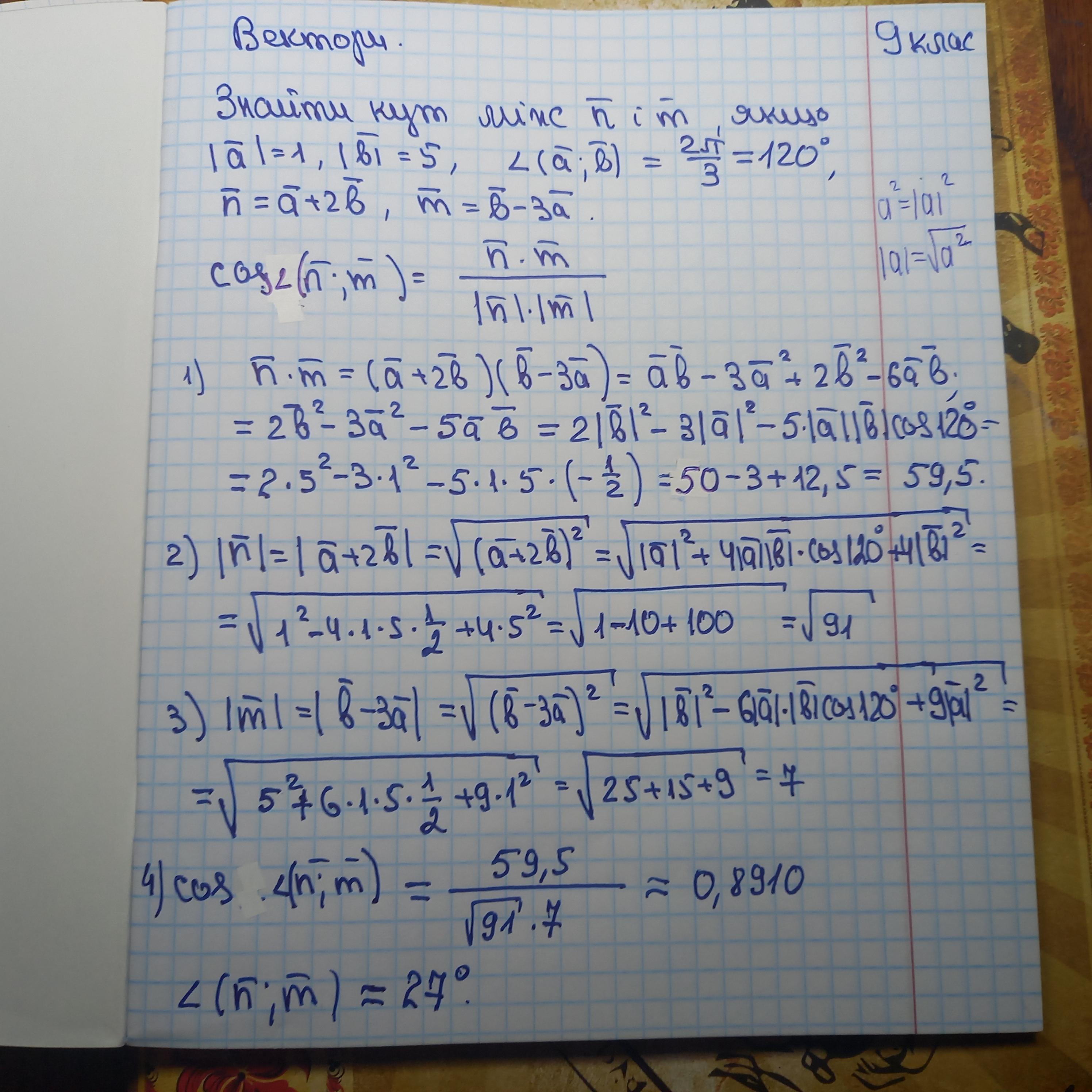 cos x=59.5/(7*√91)=59.5/66.8=0.89