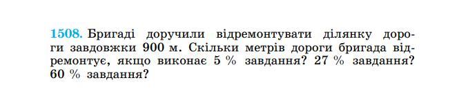 45 м дороги, якщо бригада виконає 5% завдання. 243 м дороги, якщо бригада виконає 27% завдання. 540 м дороги, якщо бригада виконає 60% завдання.