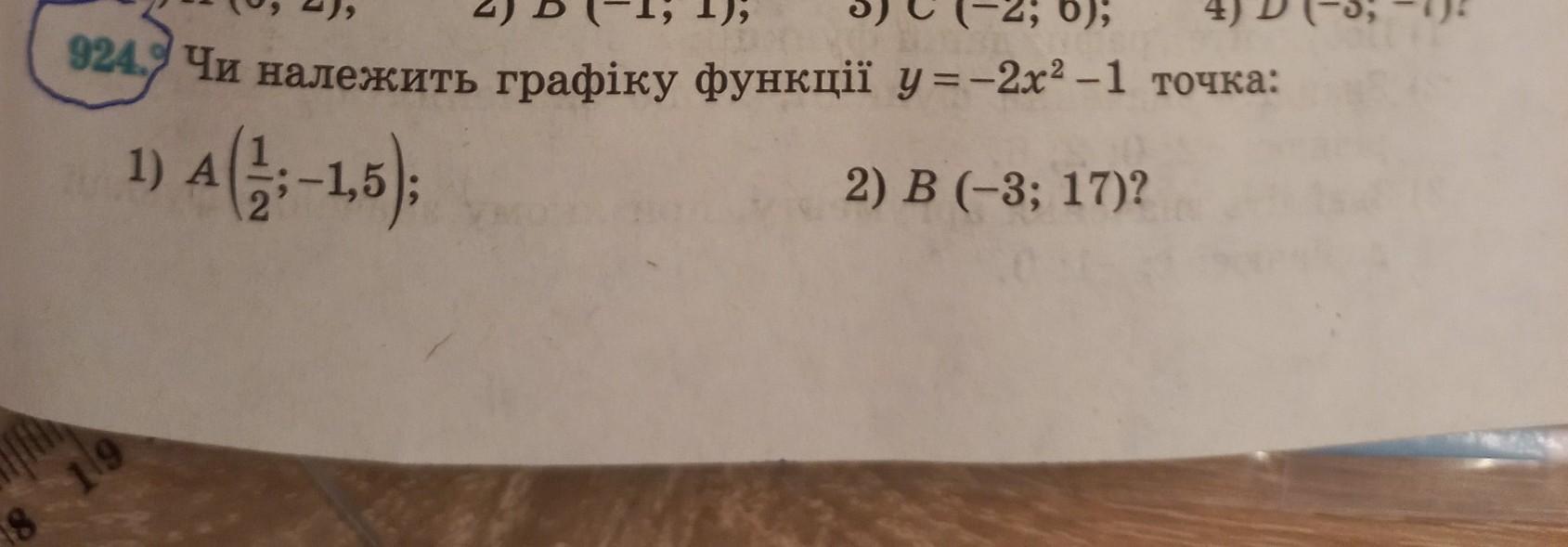 1) y= -2x²-1 А(½; -1,5)