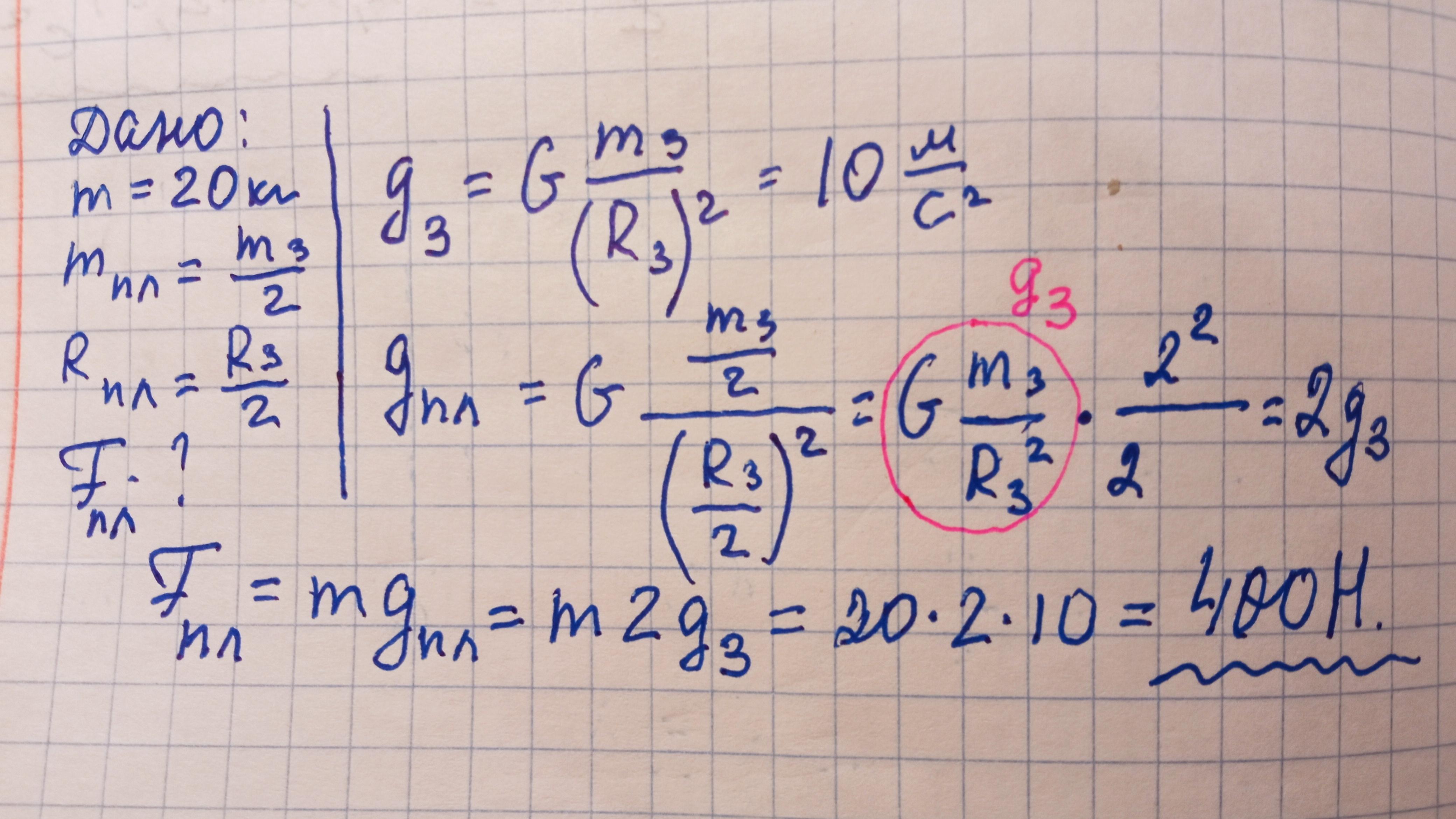 Яка сила тяжіння діє на тіло масою 20 кг на планеті, маса та радіус якої вдвічі менші від земних? Прискорення вільного падіння на поверхні Землі дорівнює 10 м/с2.