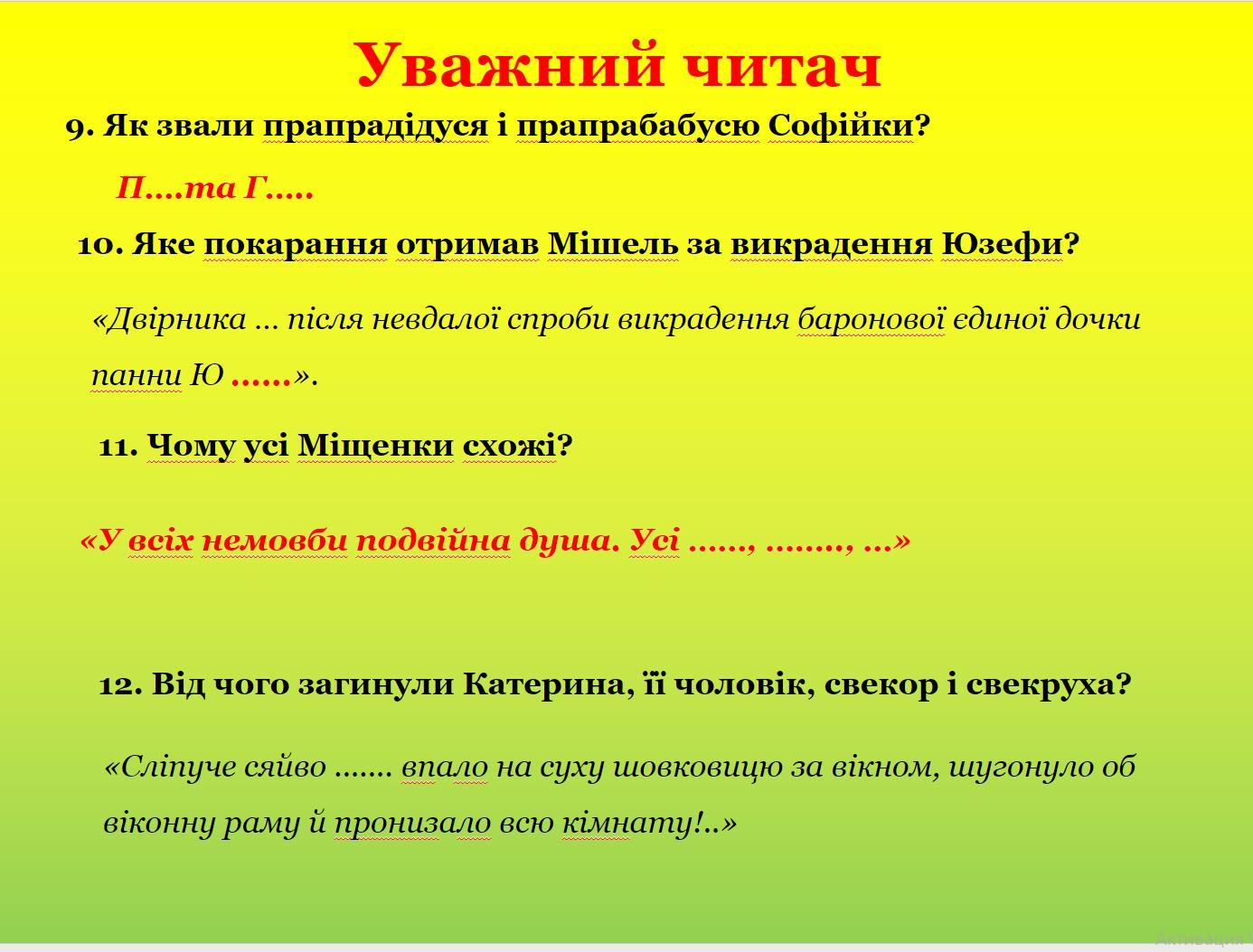 2. Софіка любила казки із щасливим кінцем. " Народні чи авторські (вони всі гріли Софійчину душу), аби тільки зі щасливим кінцем. От і ця, про Русалоньку, так до серця припала!"