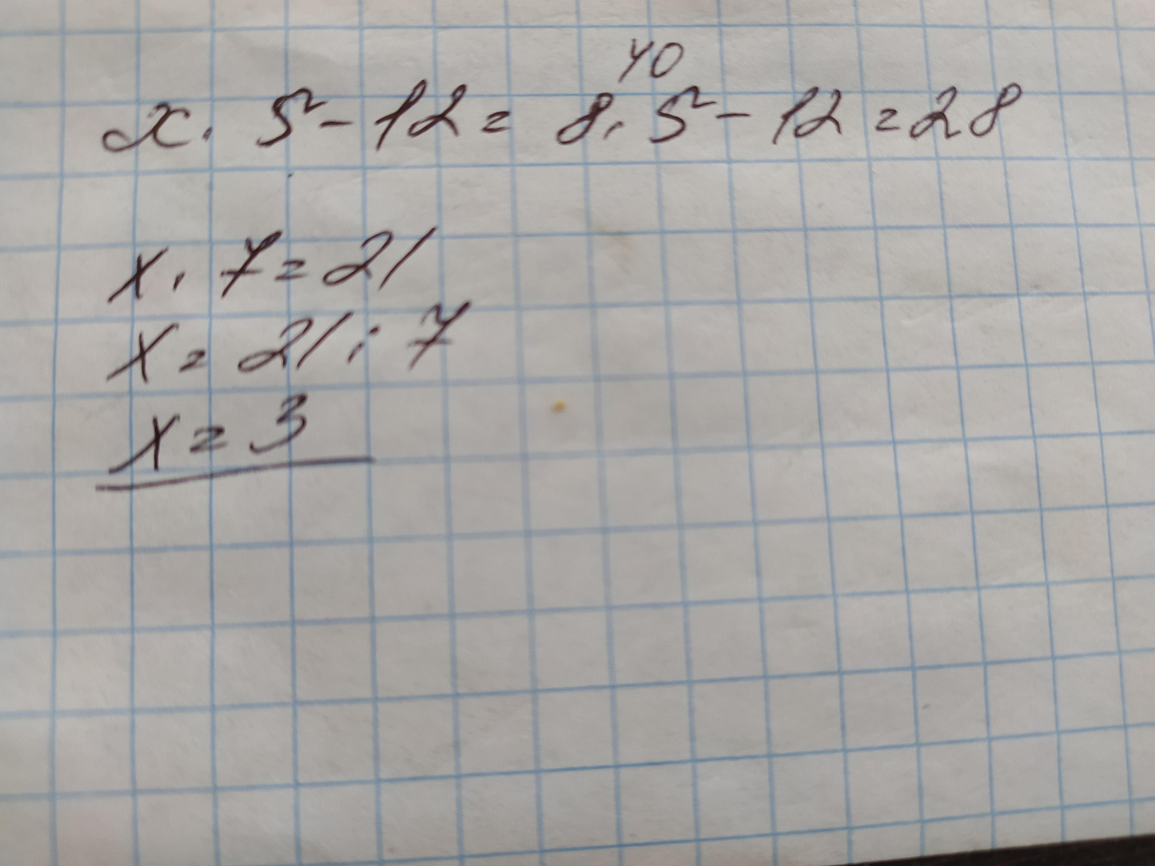 Найди значение выражения X•5-12, если X=8. реши уравнение X•7=21