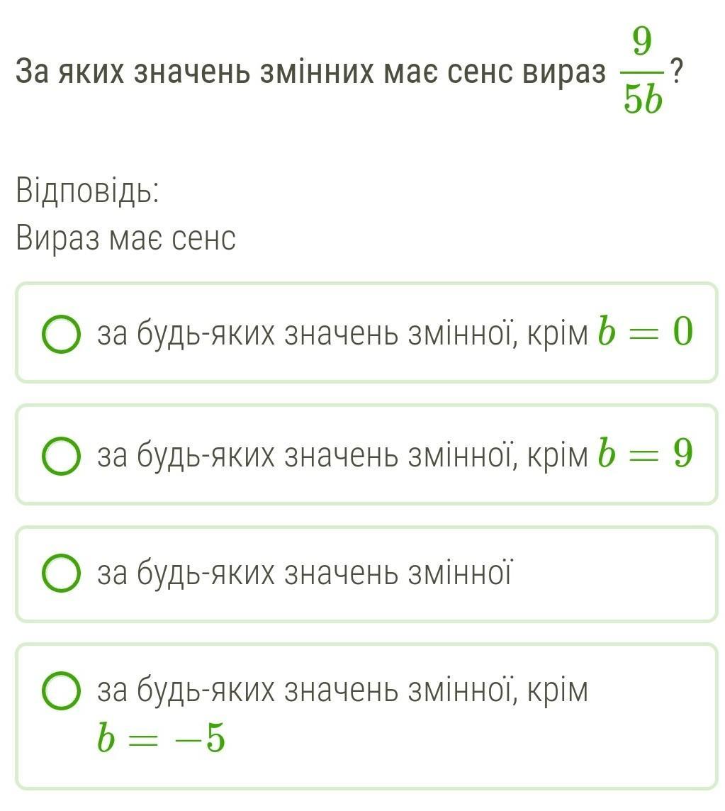 За яких значень змінних має сенс вираз 9/5b?
