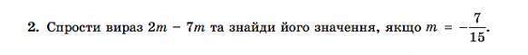 Отже, спрощений вираз 2m - 7m становить -5m, а при m = -7/15 його значення дорівнює 7/3.