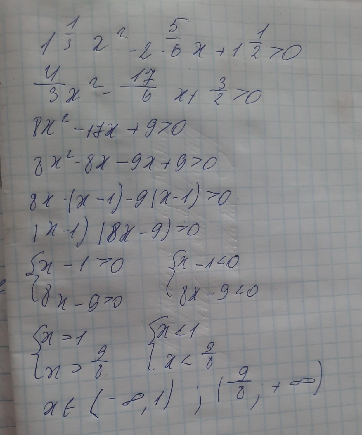 12) 1 1/3 х^2-2 5/6х + 1 1/2 > 0 помогите срочно пж!! Дам 100 баллов