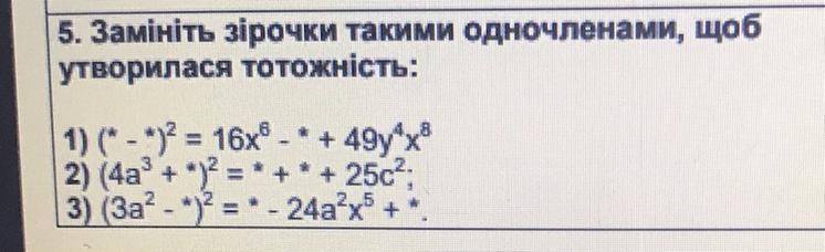Змініть зірочки на такий многочлен щоб утворилася тотожність