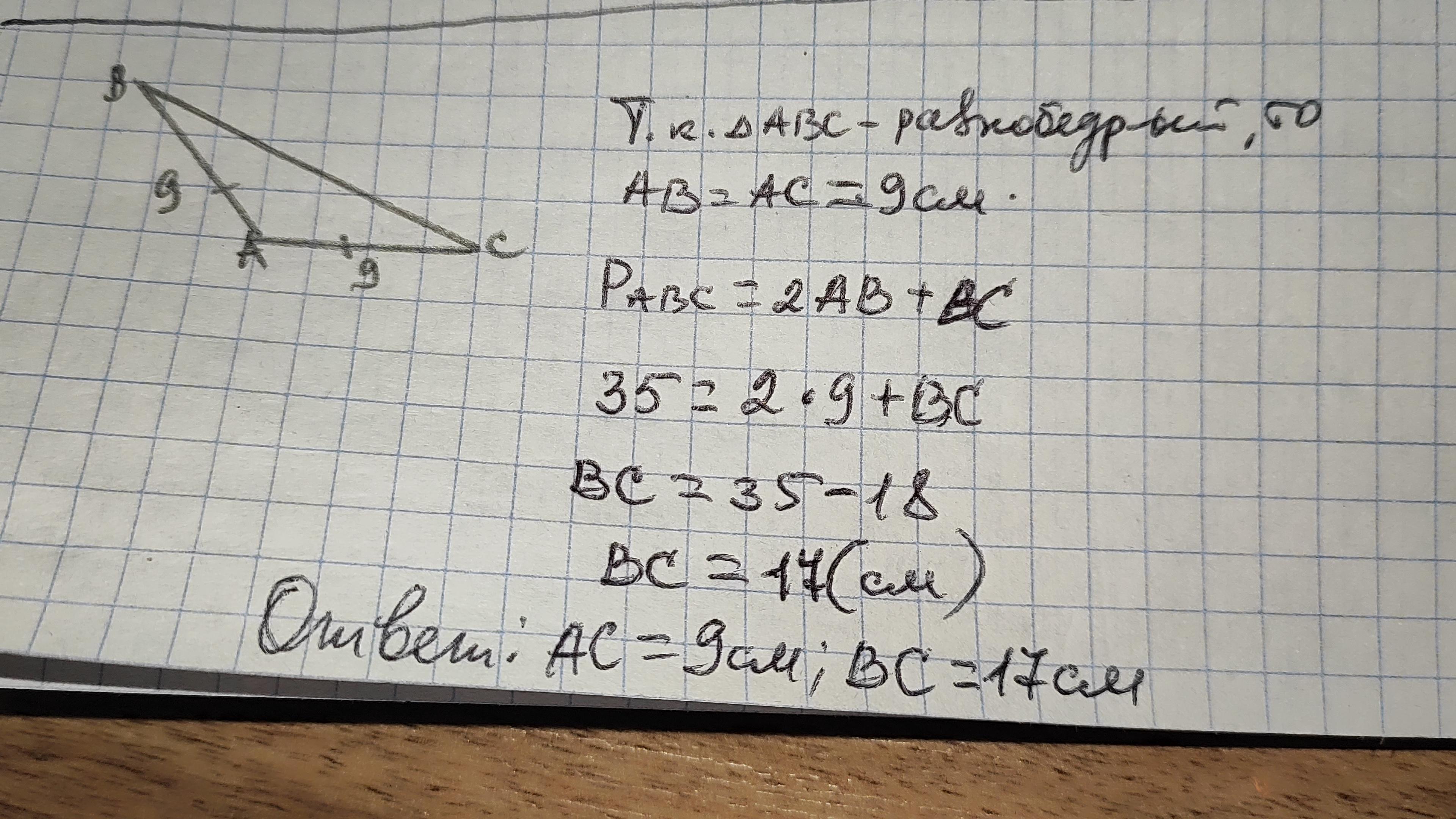 периметр равнобедренного тупоугольного треугольника 35см, одна стороны 9 см. Найдите две другие стороны