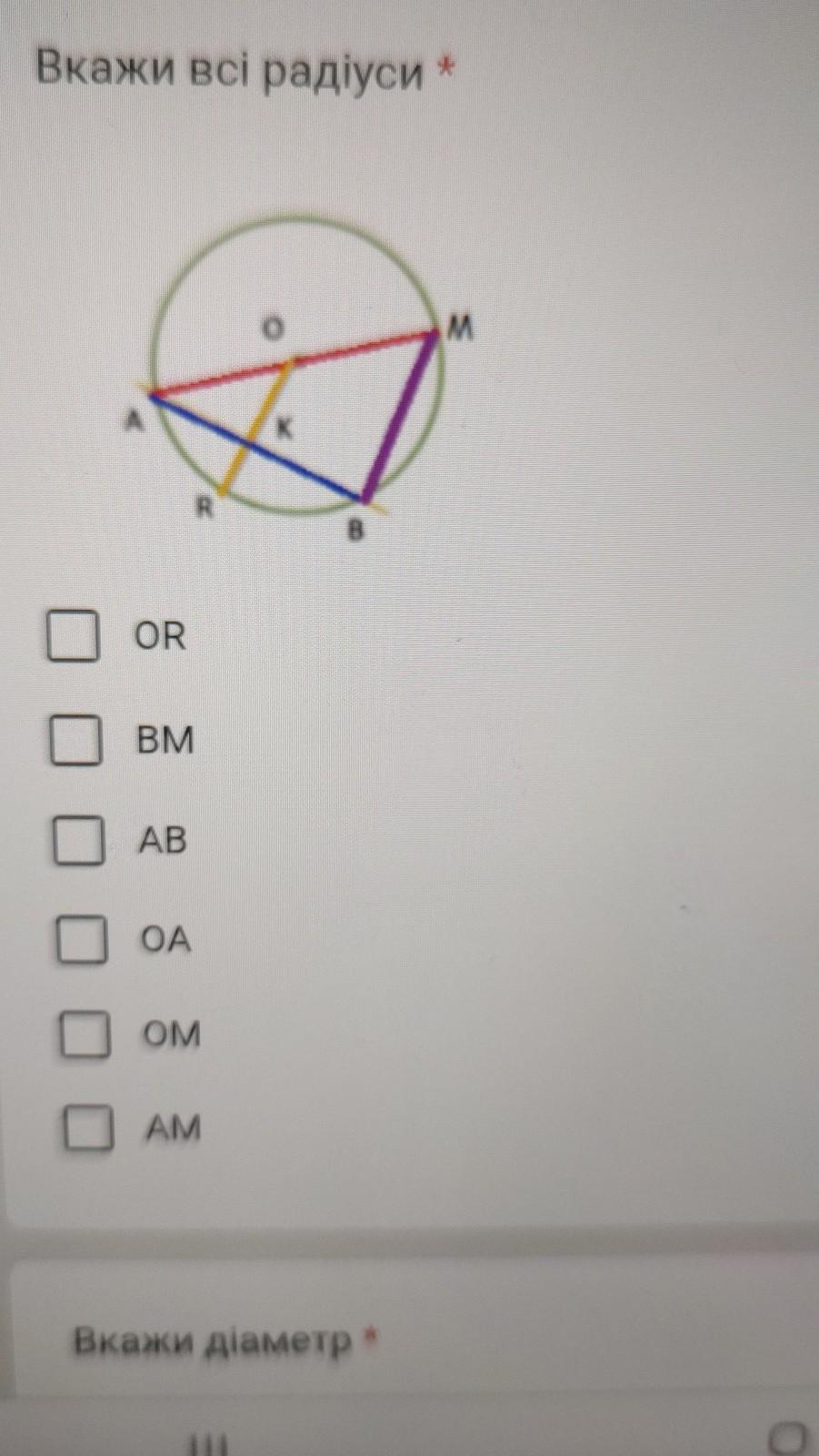 Вкажіть всі радіуси, діаметри, хорди. Будьласка
