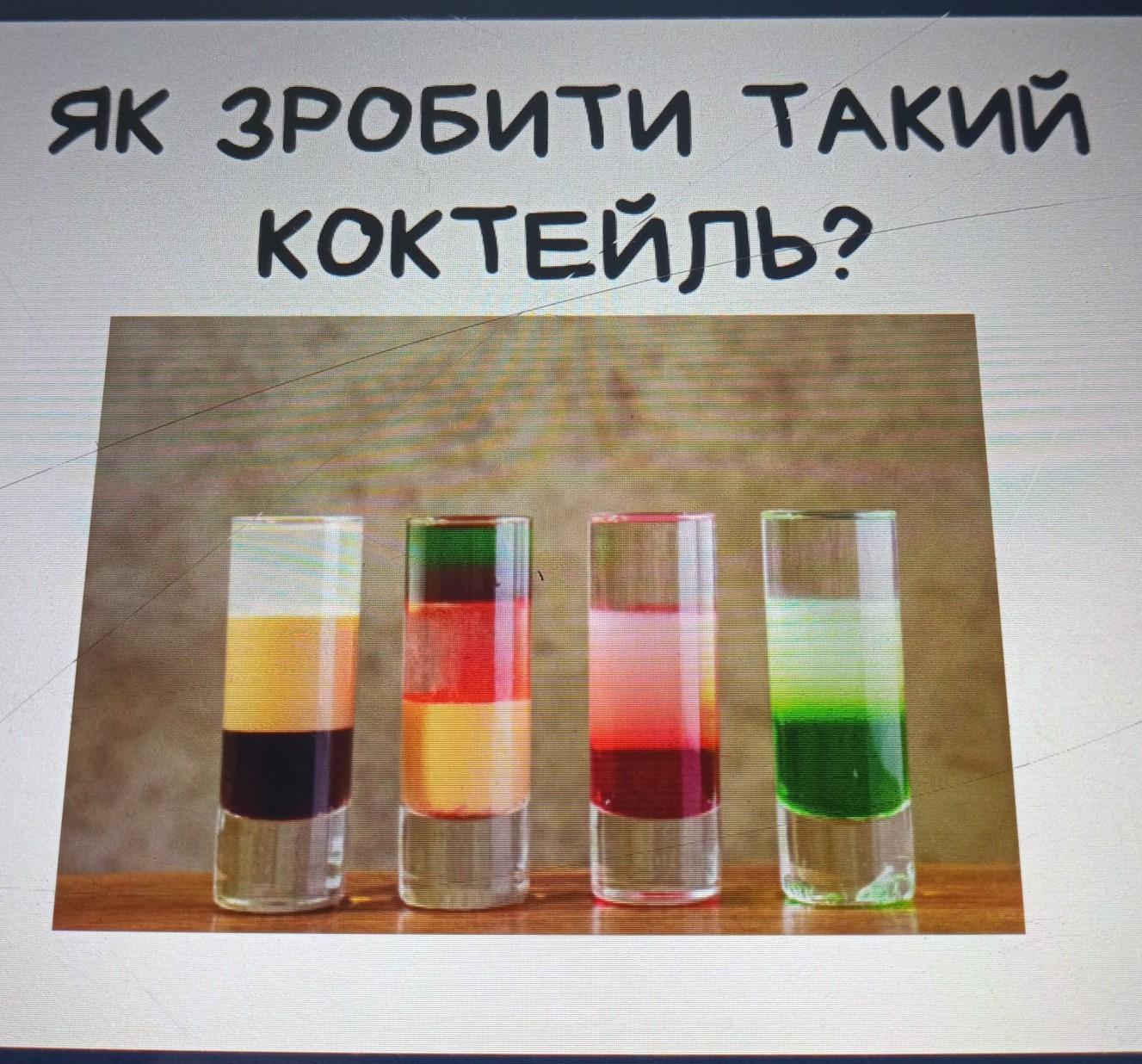 щоб зробити шари в коктелі необхідно спершу розташовувати густіші інгредієнти