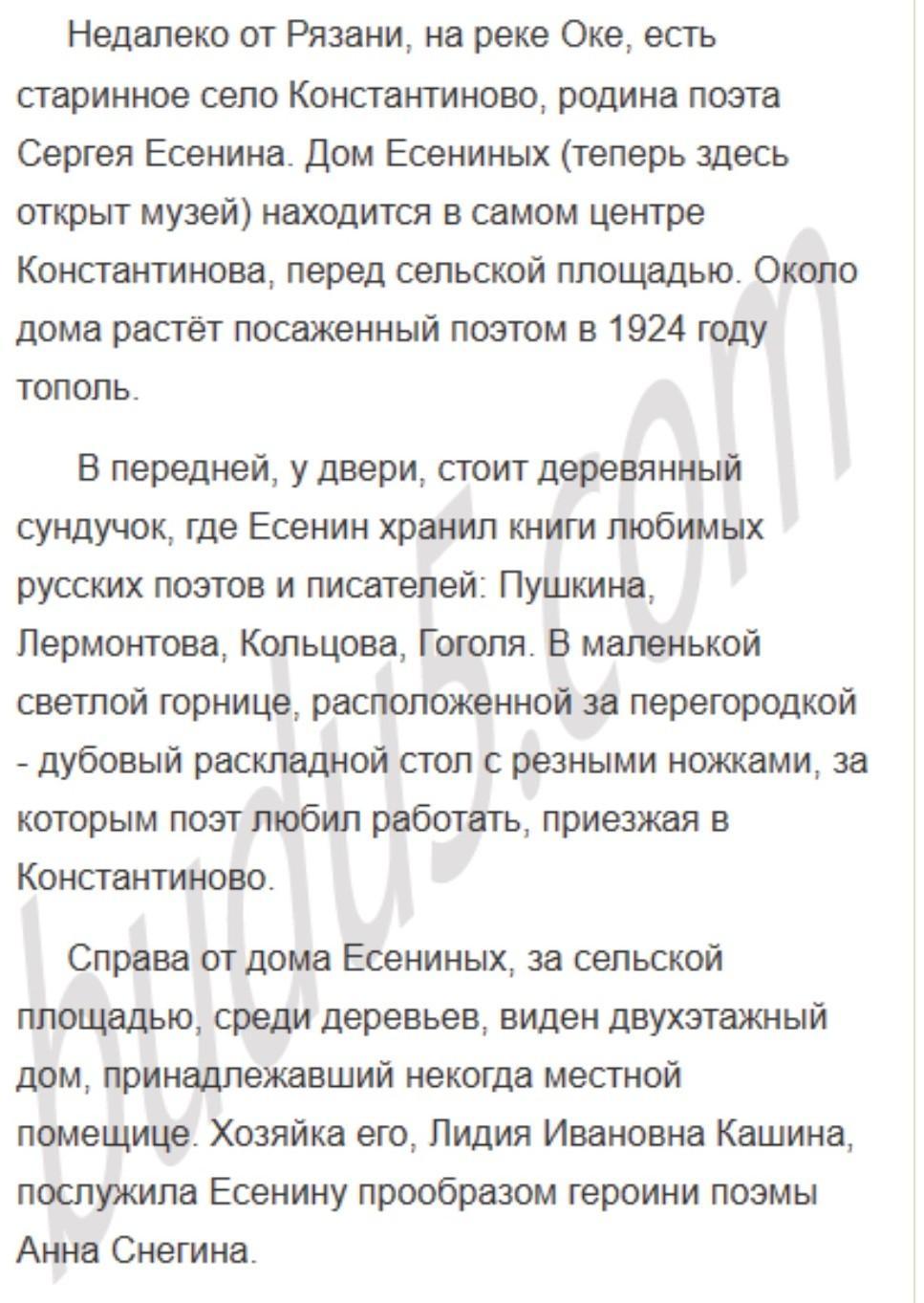 Ответ: на реке Оке, родина поэта, перед сельской площадью, теперь здесь открыт музей, у двери, за сельской площадью, Лидия Ивановна Кашина