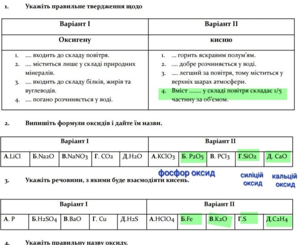 Відповіді позначені маркером на фото