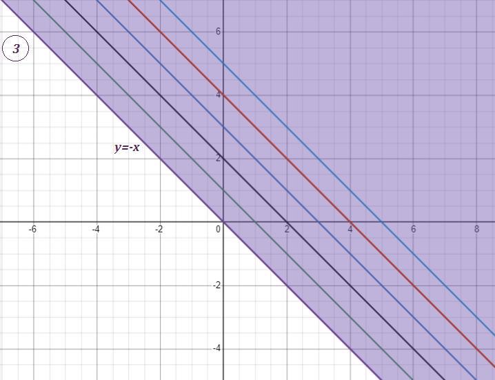 Получили, что линиями уровня являются прямые, параллельные биссектрисе 2 и 4 координатных углов . Но эти линии лежат выше прямой у= -х , так как ООФ : .