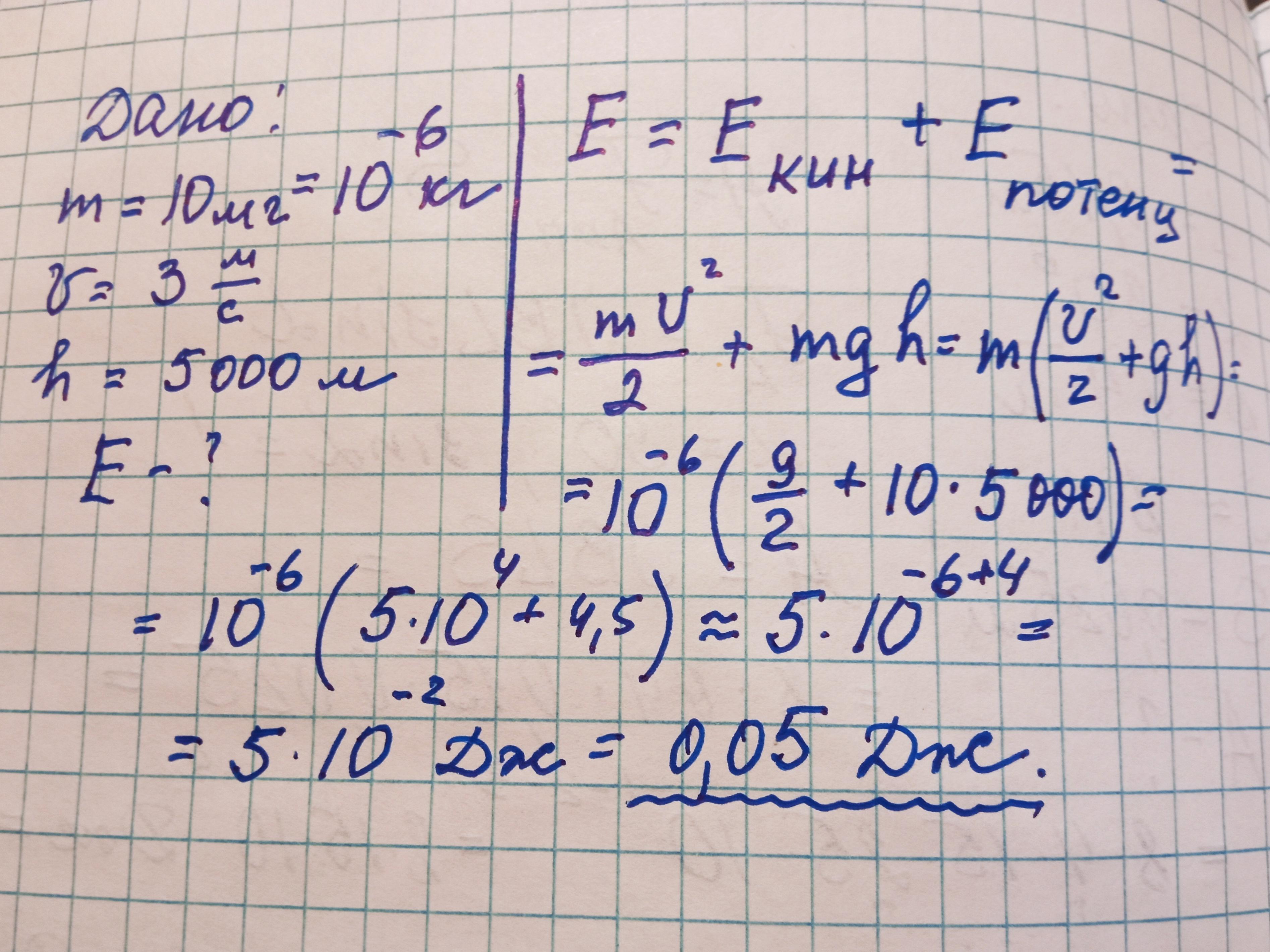 Капля Дождя 10мг движется со скоростью 3м/с на высоте 5км
