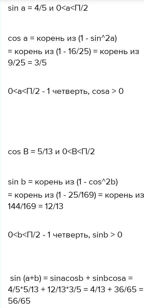 Если 0<a<b<45°, sin(a+b)=4/5 и sin(b-a)=5/13, то найдите значение cos2a.