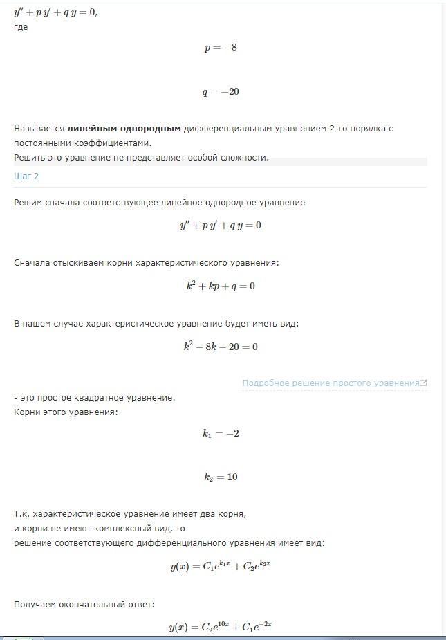 Найдите общее решение дифференциального уравнения: y"-8y'-20y=0